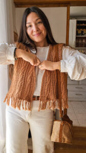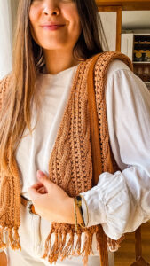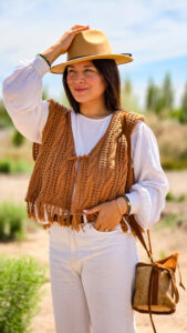 Trabajaremos las terminaciones, volados, flecos segun la opcion que elijas. Y LISTA! Preparada para lucir tu nuevo Chaleco de verano favorito?