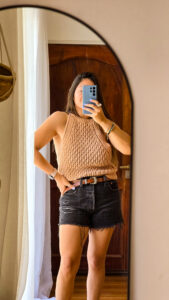 Para un talle L usé 300gr de Algodón peinado 8/6 de grosor Worsted. La marca que use es Cotone 8/6 peinado de la marca TSM. La aguja sugerida para este hilado es de 5,5mm.